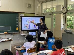 ちょうど理科の授業をしていた4年生。「どんな香りがするかな」「きれいだね」と花を観察していました。