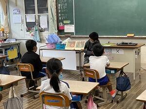 6年生は1年生の教室で、作品整理のお手伝いをしてくれました。