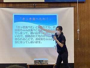 認知症の方との接し方については、濵砂さんと担任の先生とのデモンストレーションを見て、