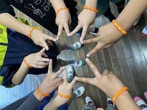 自信をつけた子どもたちの腕にオレンジリングがキラキラと輝いています。