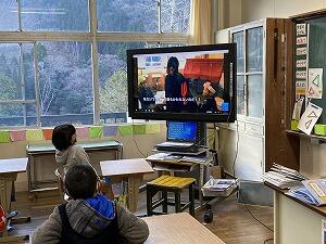 西米良中学校2年の堤康士郎さんが村所小学校に、