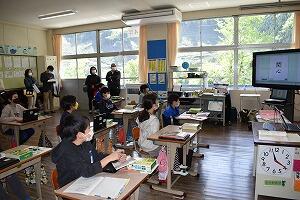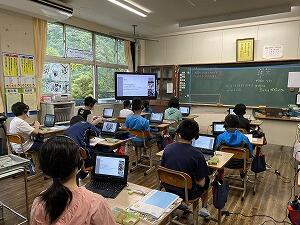 西米良村教育委員会のサポートのもと、小学校と中学校で連携しながらICTを活用した授業づくりを目指し、研究をしてきました。