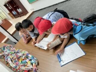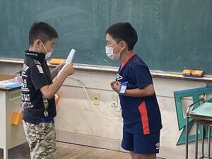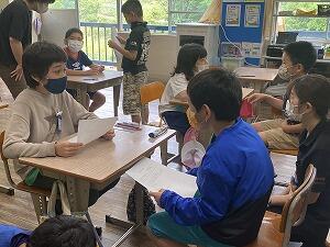 ペアでクイズ対決をします。国語、算数、理科、社会…様々なジャンルからのクイズを解きながら、小学校での学習を振り返ることができました。