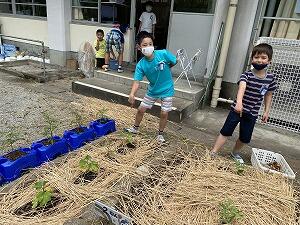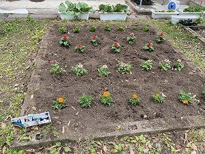 朝の時間「グリーンタイム」で学級花だんのお世話をしました。