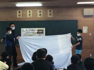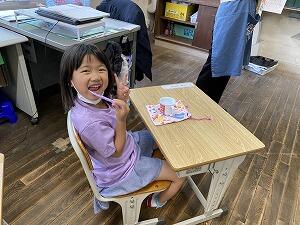 その後、理科で作ったミョウバンの宝石と、一人一人をイメージした漢字入りのメッセージをプレゼントしました。