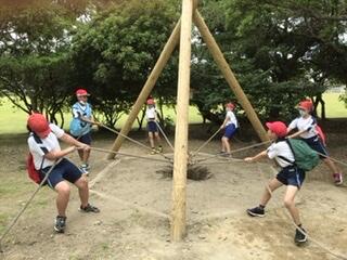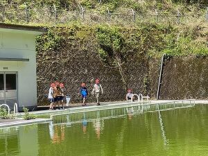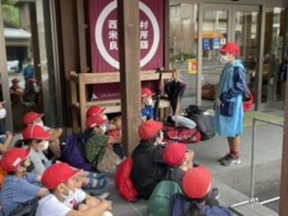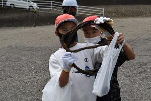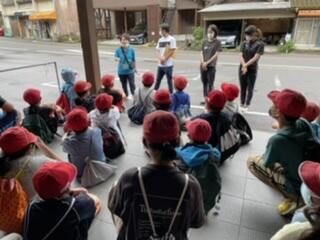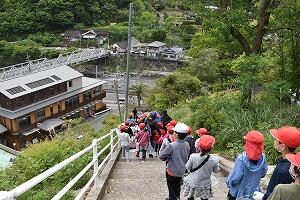 今度は30分ほど徒歩で移動。6年生と1年生がいっしょに歩きます。