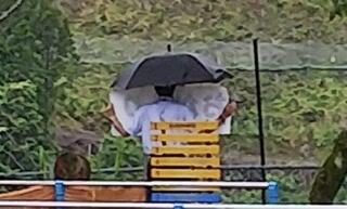 そこで、本年度は、PTA役員の方々と協議した結果、中庭の砂利敷きとセンダンの木の伐採をお願いしました。和也PTA会長も自らチェーンソーを持たれ、高所で伐採していただきました。