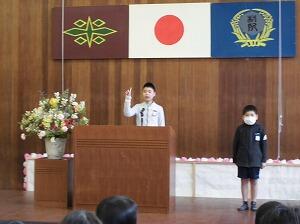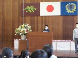 また、新4年の河野けいすけさん、新6年の中武しおんさんが、児童を代表して新学期の抱負を堂々と発表していました。