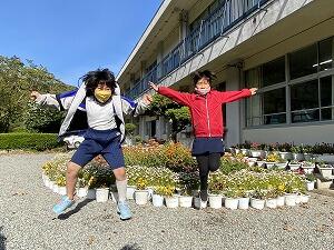 この花壇のプレートは、6年生が卒業記念に作ってくれたものです。