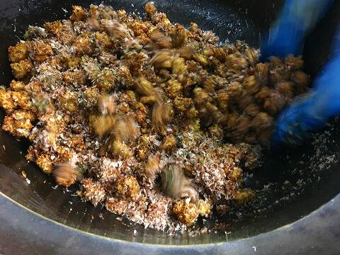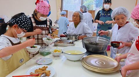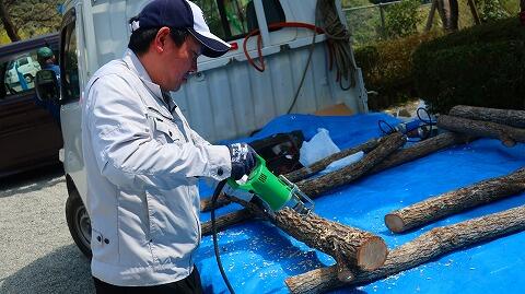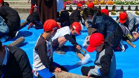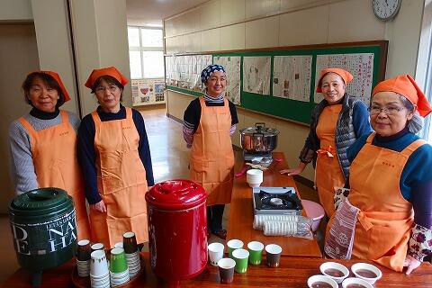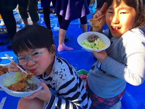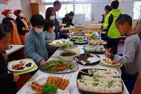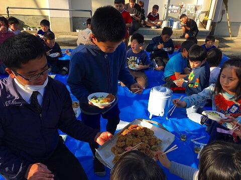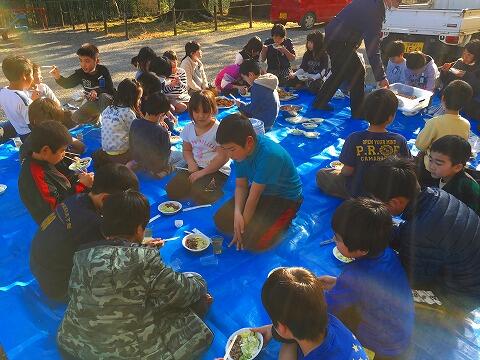 儀式開催前に猪肉(塩焼き)の振る舞いに舌鼓。