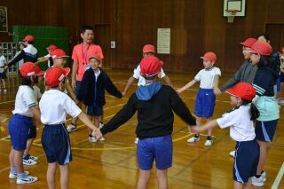 ムカデディフェンスの様子。1年生も楽しんで運動に