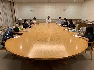 各グループの班長が今日一日を振り返り、話し合いをしています。