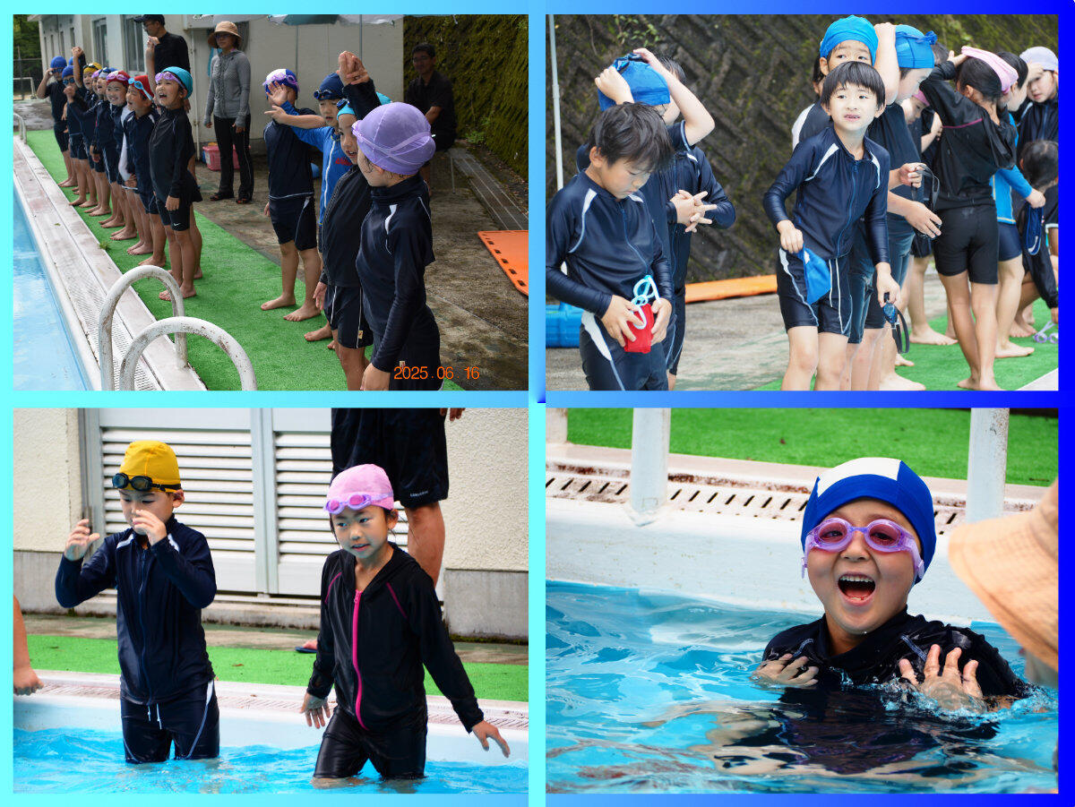 6月も中旬を迎え、暑さが日に日に増してきました。そんな中、1・2年生の子どもたちが待ちに待ったプール開きを行いました。