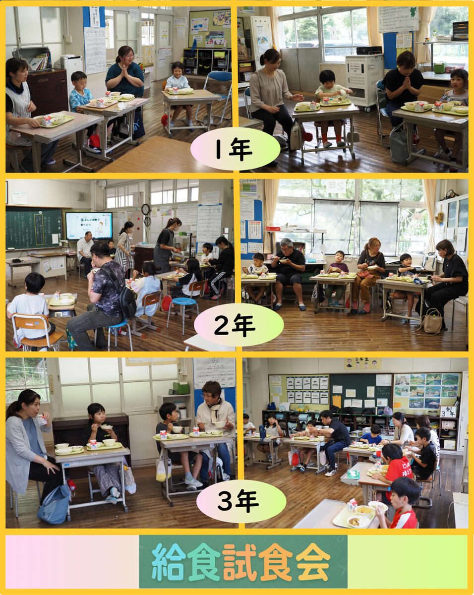 保護者の方と一緒に机を囲み、子どもたちは嬉しそうに給食を食べていました。