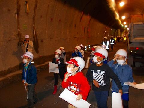 22日(金)3、6年生が小春2号トンネル工事(長さ約480m)を見学。