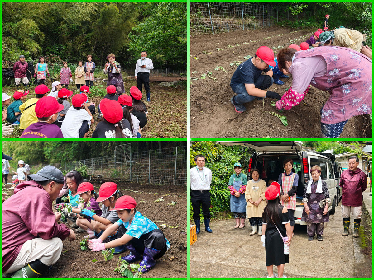 JAの方々やアグリスクールの皆さんに苗の植え方を教えていただきながら、子ども達はみんな笑顔で取り組んでいました。
