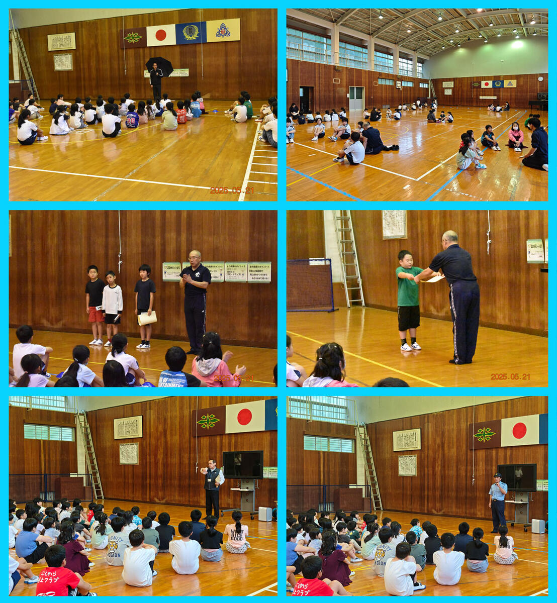 さらに、不審者対応の避難訓練も実施しました。スクールサポーターの方や警察の方にご協力いただき、万が一に備えての行動について学びました。講話では、落ち着いて行動することやすぐに近くの大人に知らせることなど、対応について教えていただき、子どもたちにとって大変貴重な時間となりました。