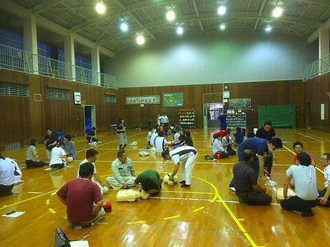 体育館で扇風機を回し、少しでも涼しくするとともに、