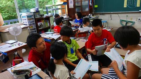 畩友さんの御指導や、子どもたちの発表の様子を熱心に取材される中、