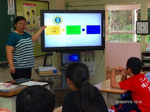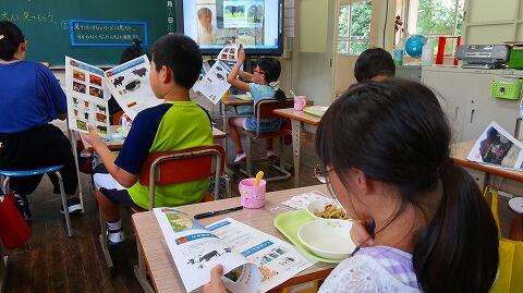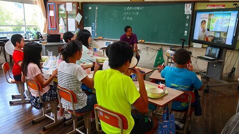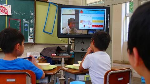 TV会議を通して給食中の児童に一斉に御説明いただきました。