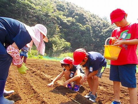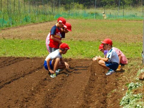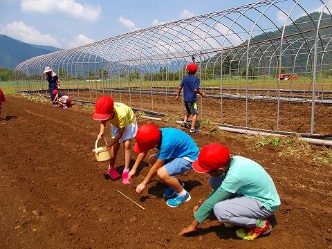 前もって整えていた花壇に、新しい苗を大事そうに植える子どもたち。