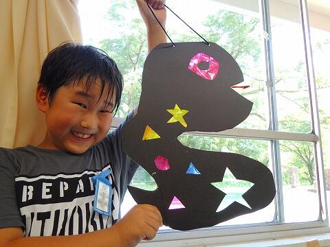 1年生はちょきちょき飾り。折り紙を利用したもの。