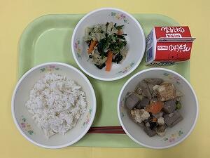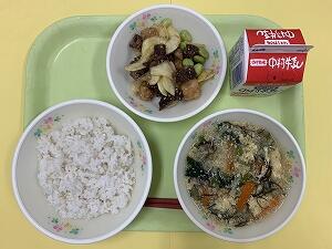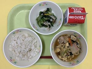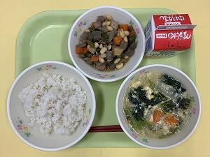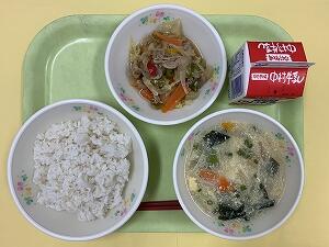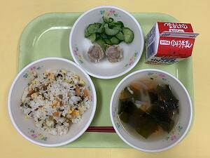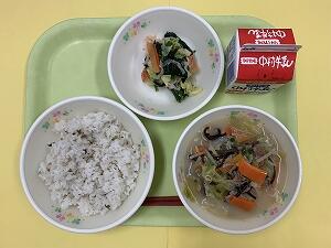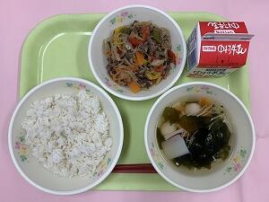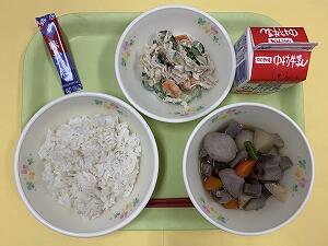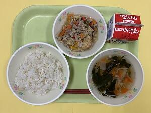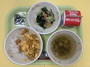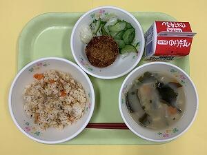 鶏飯(麦ごはん・鶏飯のスープ・具、きざみのり)
