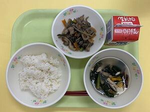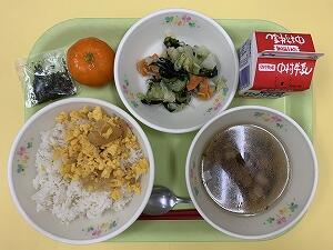 そぼろ煮のしいたけは、村所小のきのこ園のしいたけです。