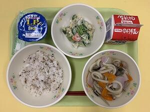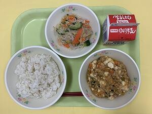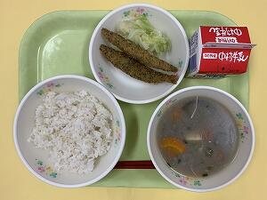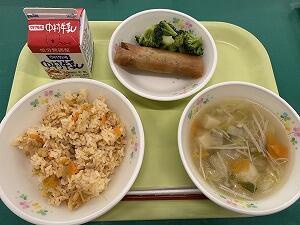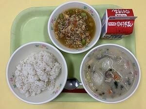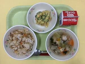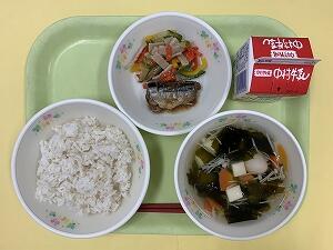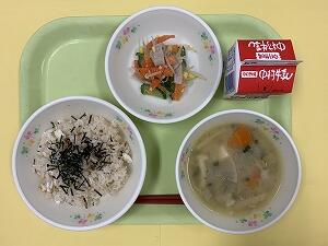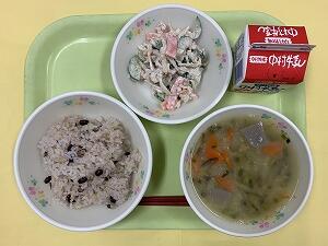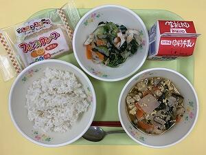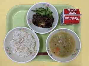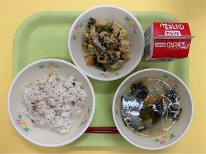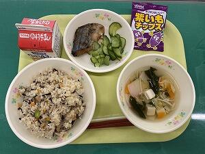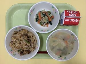 わかめごはん、タイピーエン、大豆と小魚の揚げ煮