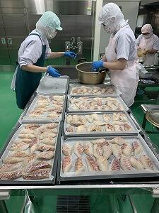 給食応援事業の一環で、宮崎県産の真鯛が給食に使われました!