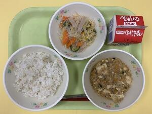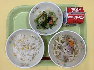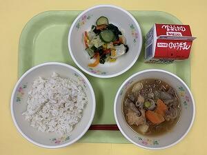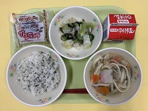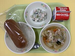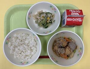 昨日と今日の給食の献立は、西米良中の山﨑りゅうかさんが3月に職場体験の際に考えてくれたものです。子ども達にもとても好評でした。