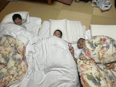 子供たちは、食事後、各部屋でお風呂を済ませ、寝る準備です。みんな体調もよく、無事に1日目が終了しそうです。
