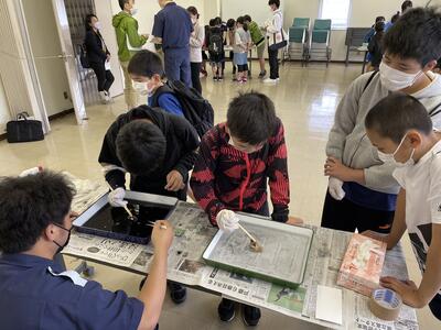 今回は鑑識業務体験で3つのやり方で指紋検出をやってみました。液体法と2つの粉末法です。犯人逮捕に向けての捜査活動で緻密な作業です。貴重な体験でした。