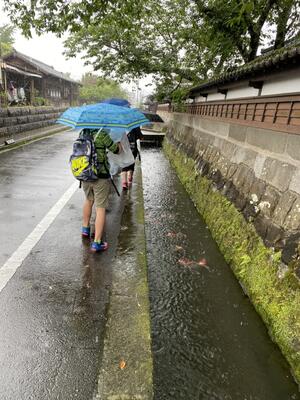 雨は相変わらず昇降状態で、時折、本降りの雨が降ってましたが、子供たちはいつもどおり元気で、出発しました。観光案内で5枚のチケット付きの「あゆみちゃんマップ」をもとに、事前に下調べしたコースで各施設やお店を周りました。
