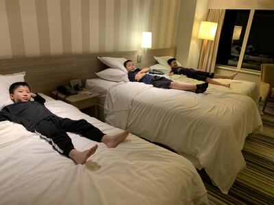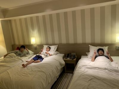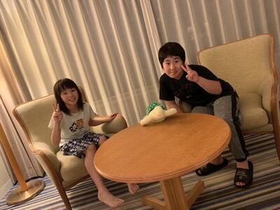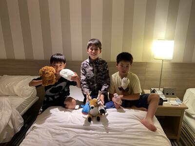 やっとホテルに着きました。青島神社までの往復、結構歩きましたが、子供たちは、まだ元気余ってるようです。