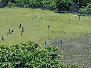 大王グランドまで歩いて移動。学年ごとに、広場で思いっきり楽しみました。