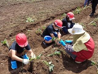 1・2年生は、ペロリ農園に出かけて、芋の苗植えをしました。アグリスクールの方々に芋の苗の植え方を教えてもらい、畝に芋の苗を植えていきました。2年生は、昨年度1度やっているということで、上手に植えていました。1年生もアグリスクールの方々に教えてもらいながら、植えていました。秋の収穫が楽しみです。