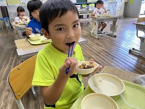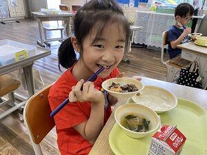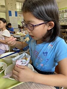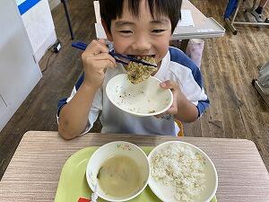 昨日は地震の避難訓練も行われましたが、給食では「非常食体験給食」が登場しました。