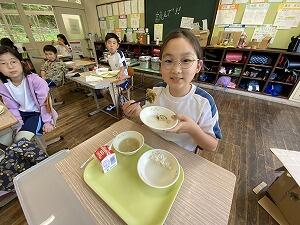これは、村所小学校で行われた茶摘みで収穫されたお茶の葉を使ったメニューです。