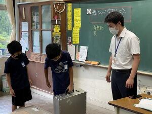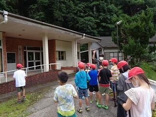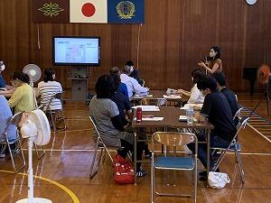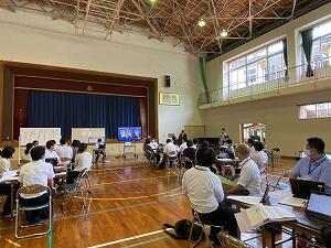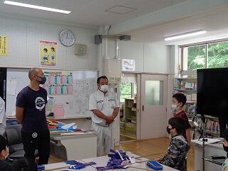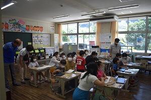 西米良村は、清流一つ瀬川が流れ、夏には観光客が多く訪れます。久美子先生からは、夏休み中に水の事故や車の事故に気を付けて生活することについての話がありました。