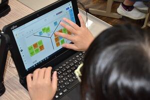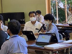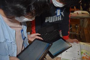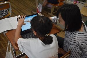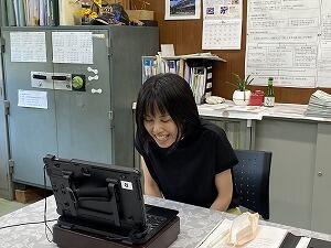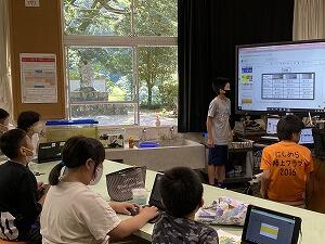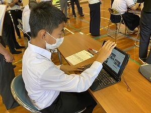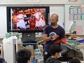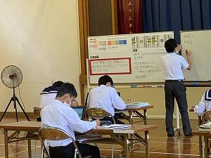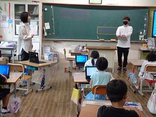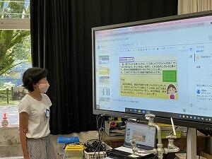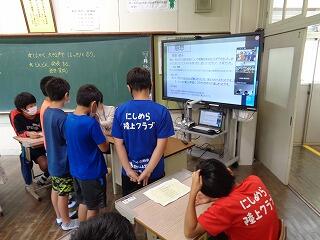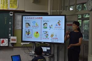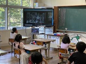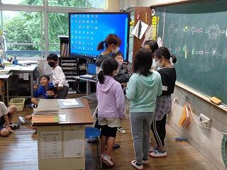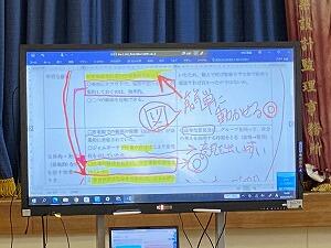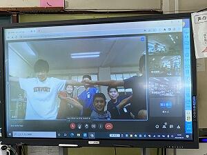 また、昼の放送では、オンラインで教室の電子黒板とつなぎ、運動会応援リーダーからのお知らせがありました。