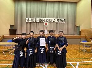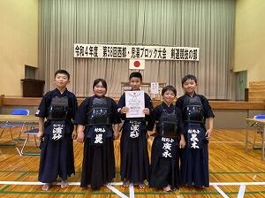 剣道の宮崎県大会で優勝した村所少年剣道部Aチームの表彰が行われました。