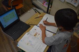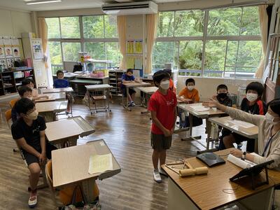 オンラインでの始業式では、2年生の濱田凛太郎さん、4年生の英優季乃さん、6年生の村上桜雅さんが2学期の目標を発表してくれました。