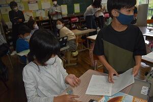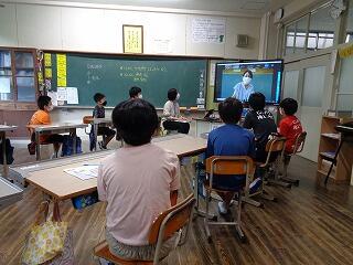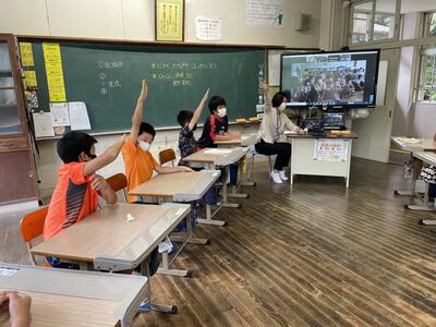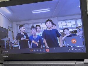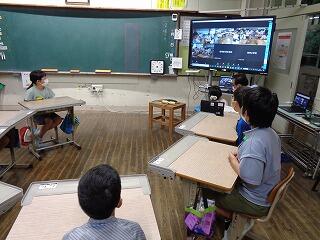 例年熊本県菊池市の隈府小に5・6年生が出かけ、交流を行っています。今年も、昨年度に続きオンラインでの交流となりました。6年生は学活(学校・学級の紹介)と外国語活動、5年生は学活(学校・学級の紹介)と算数・社会等の学習で、まとめたことを発表したり、クイズを出題したりして交流しました。貴重な体験となりました。