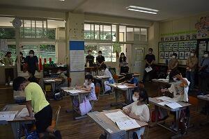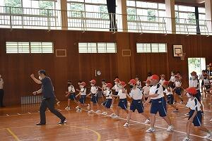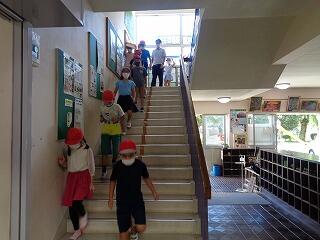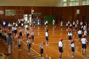 防災の日を前に、全校での地震が起こった場合の避難訓練がありました。まず、地震発生時の対応のDVDを視聴し、担任が避難の仕方や普段から心掛けることなどを指導しました。その後、実際に運動場に避難し、校長先生の話を聞きました。全員が静かに、素早く避難できていました。落ち着きのある行動を、普段から心掛けたいものです。