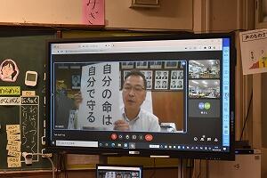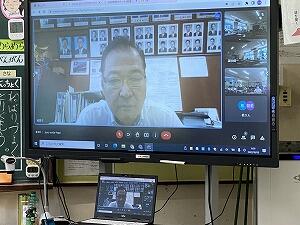 集会は各クラスと校長室をつないだオンラインで行いました。
