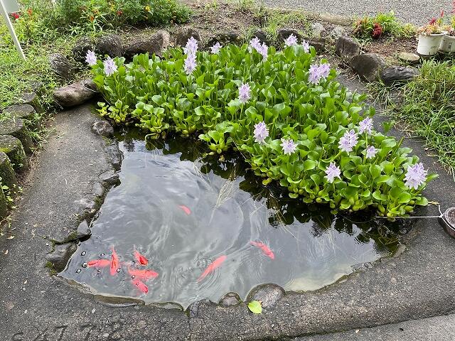 玄関横には8匹の鯉が涼しげに泳いでおり、赤ちゃんも2匹産まれてます。また、ホテイアオイの紫の花もとても綺麗です。現在、ホテイアオイが増えすぎて、鯉さんの泳ぎ場を覆いそうです。欲しい方がいらっしゃれば、ご連絡ください。