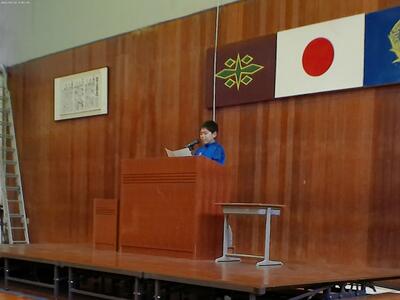 その後は、新しい学年に進級した中から、新2年生、新4年生、新6年生の代表児童1名ずつが、今年度に向けた意気込みを作文発表してくれました。