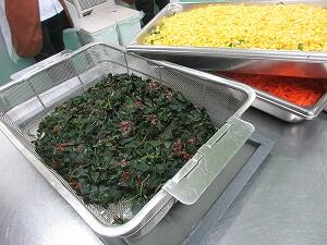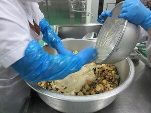 学校給食では、サラダなどの冷たいおかずも一度加熱してから冷却します。