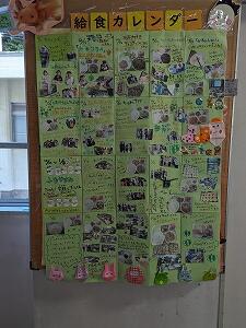 毎日その日の給食や子ども達の様子をまとめています。子ども達も毎日楽しみにしてくれています。給食カレンダーに写真を貼ったり書きこんでいるとたくさんの子ども達が集まって来てくれます。
